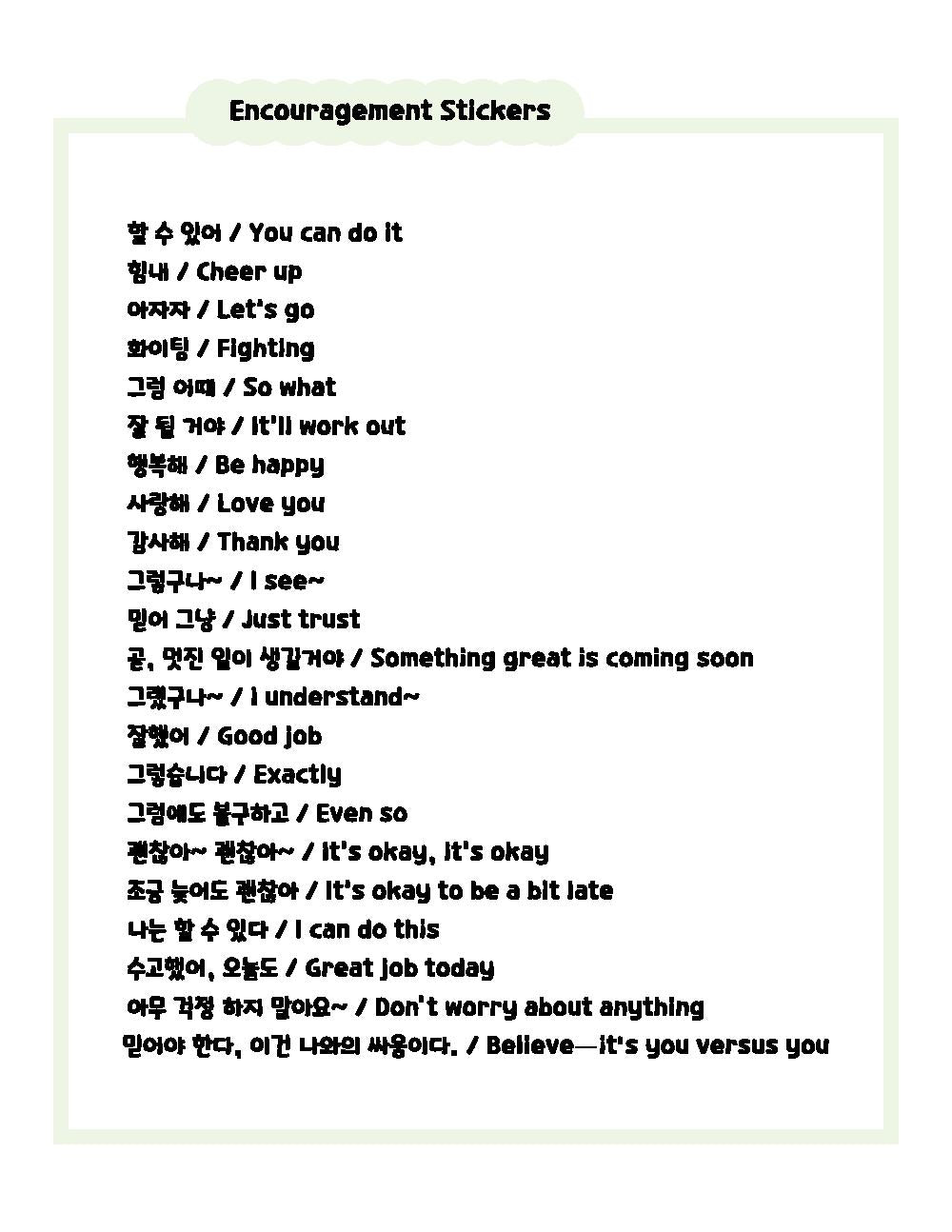 ** Encouragement Stickers - Korean & English Inspirational Stickers
