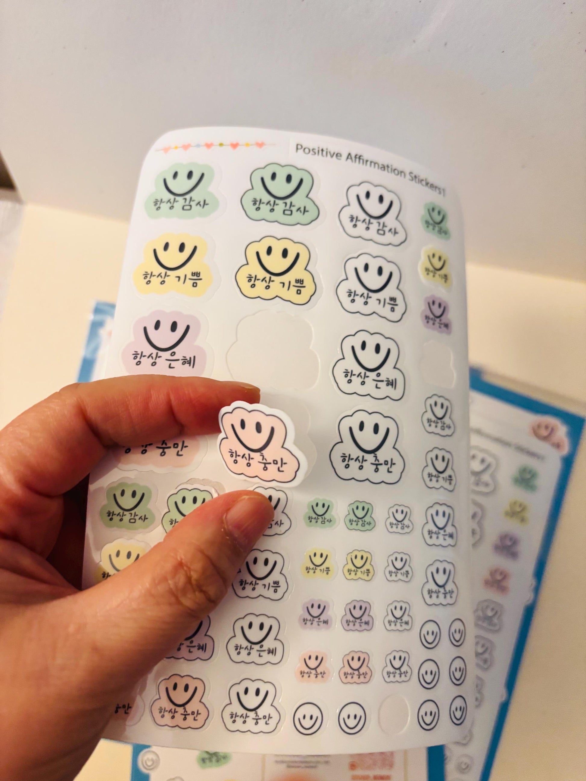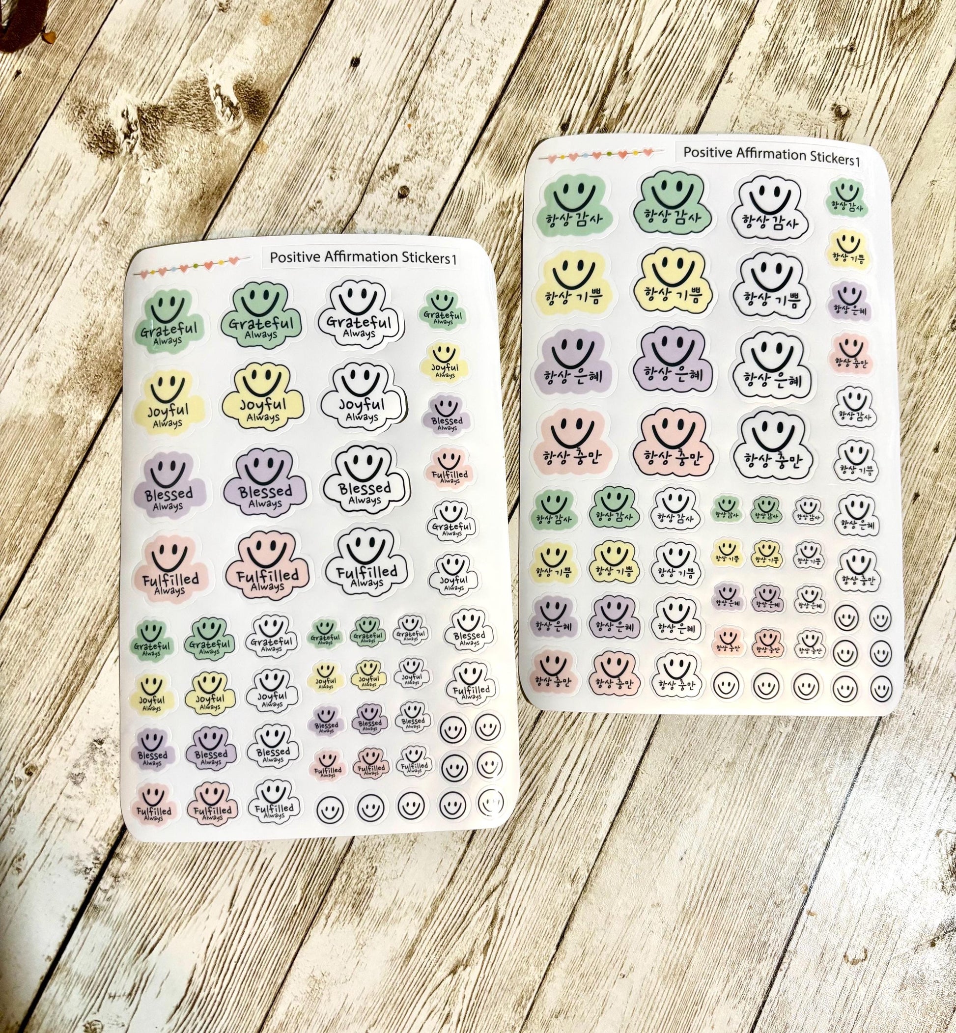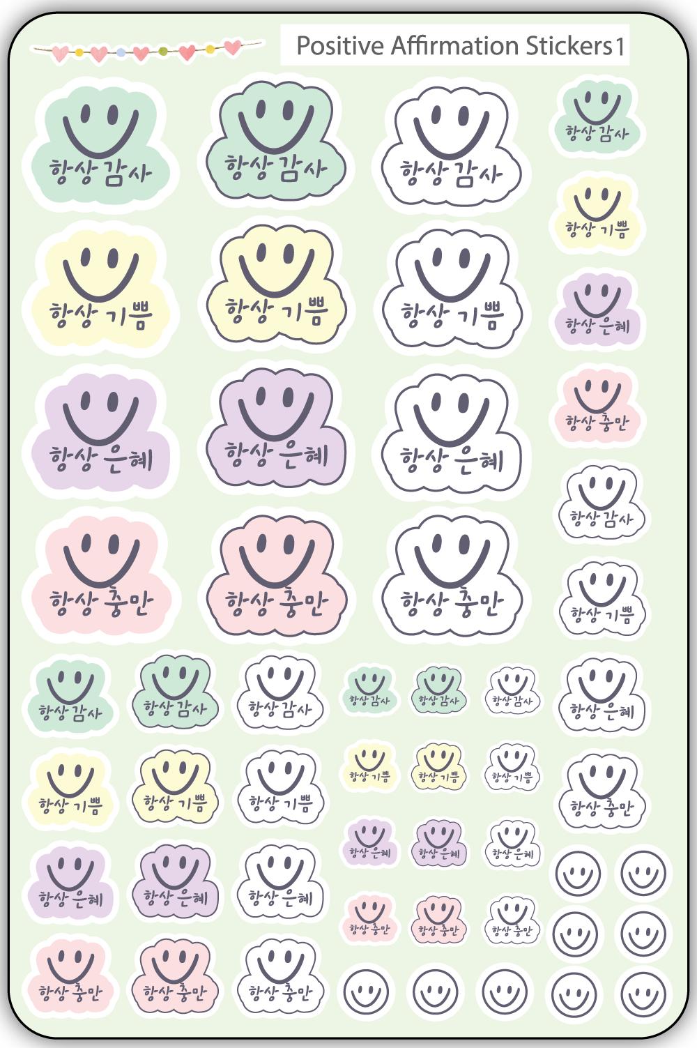 Korean and English Affirmation Stickers – Waterproof Smiley Face Set | Inspirational Journal & Planner Stickers | Positive Encouragement